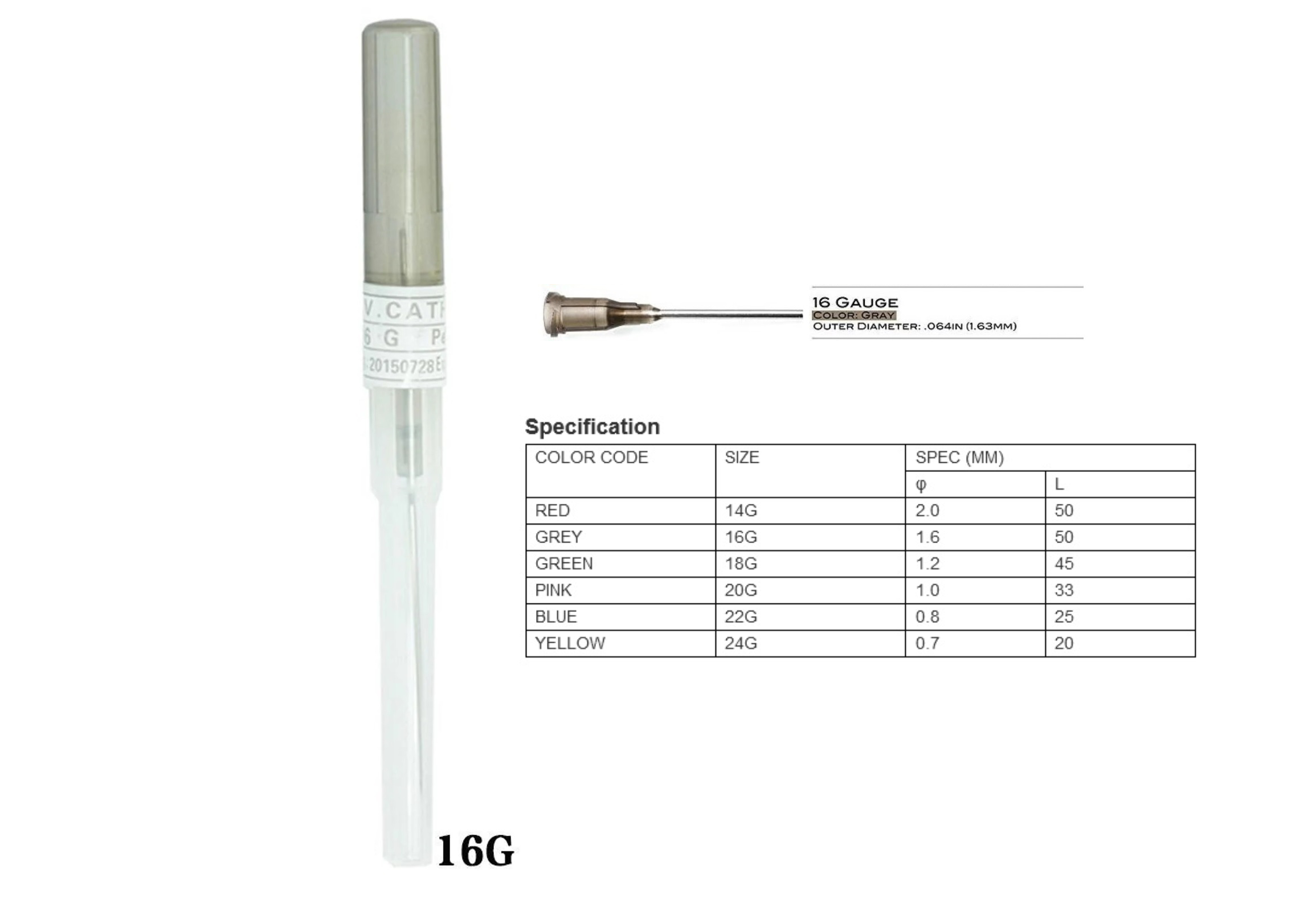 Igły te różnią się średnicą, przy czym igła 14ga ma większą średnicę niż igła 16ga. Wybór rozmiaru igły zależy od wielkości pacjenta i ilości powietrza do usunięcia.
