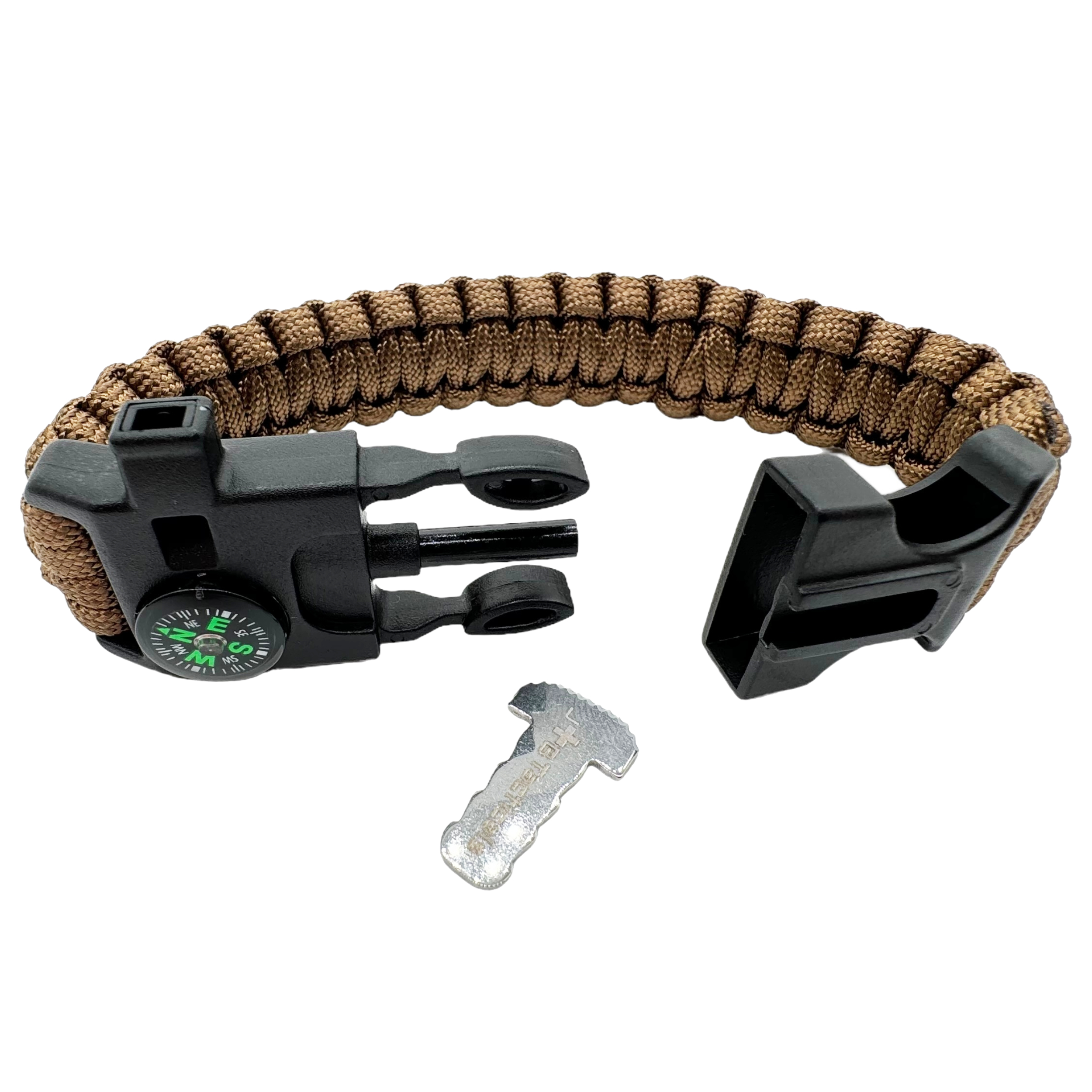 • Opaska z paracordu: Około 2,8 metra paracordu, który może posłużyć jako lina ratunkowa, linka do zbudowania schronienia lub do innych awaryjnych zastosowań.