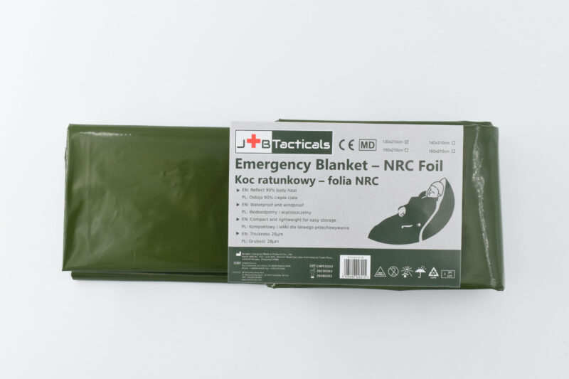 Koc ratunkowy – folia NRC 130×210 cm wersja militarna – JB Tacticals