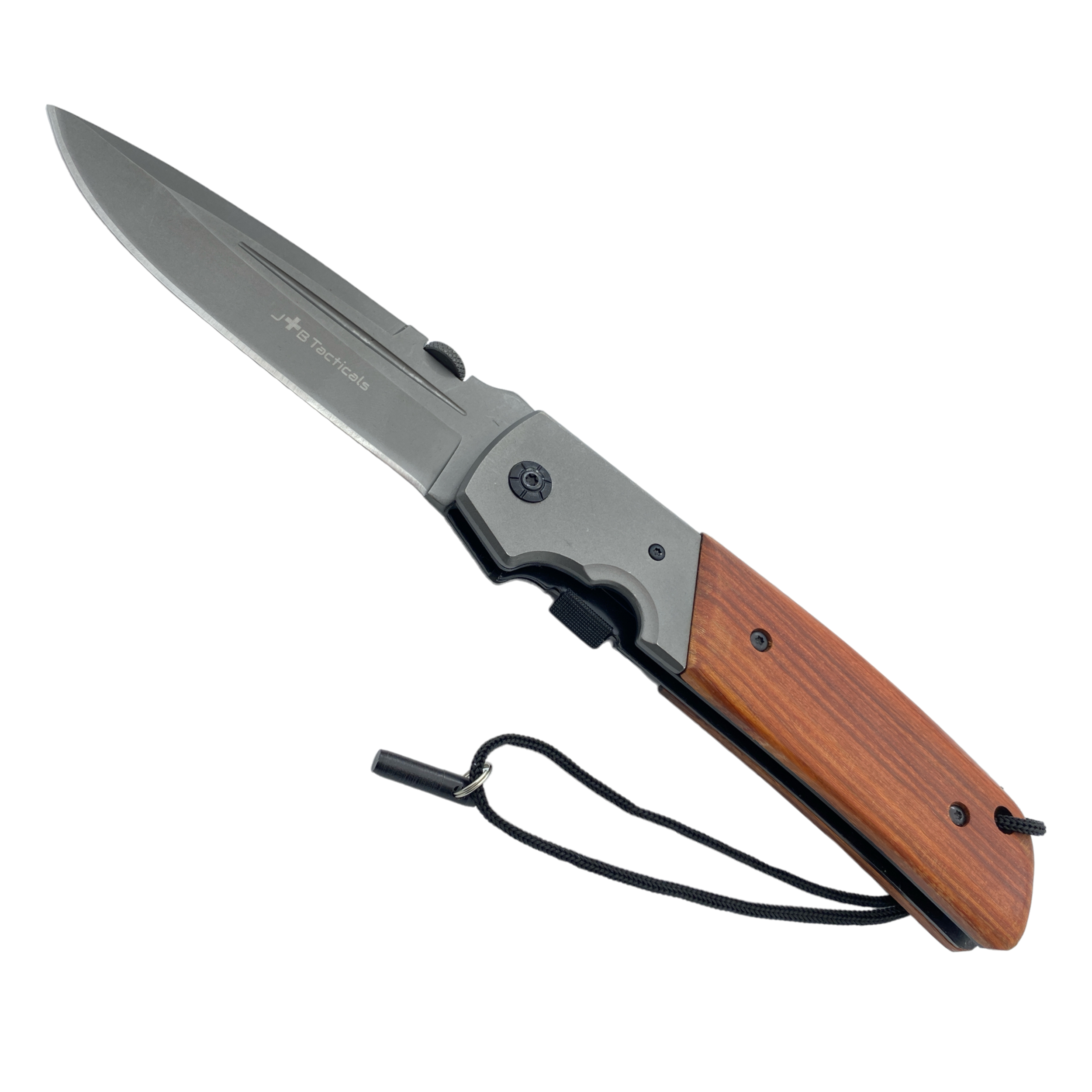 - Dodatkowy Metalowy Kołek: Nóż JB-15 XL 27,5 cm posiada unikalną funkcję w postaci metalowego kołka umieszczonego na sznurku. Ten metalowy kołek służy jako dodatkowa blokada noża, gdy jest rozłożony i gotowy do działania. Po całkowitym otwarciu noża, kołek jest klinowany, dodatkowo zabezpieczając ostrze przed niechcianym złożeniem.