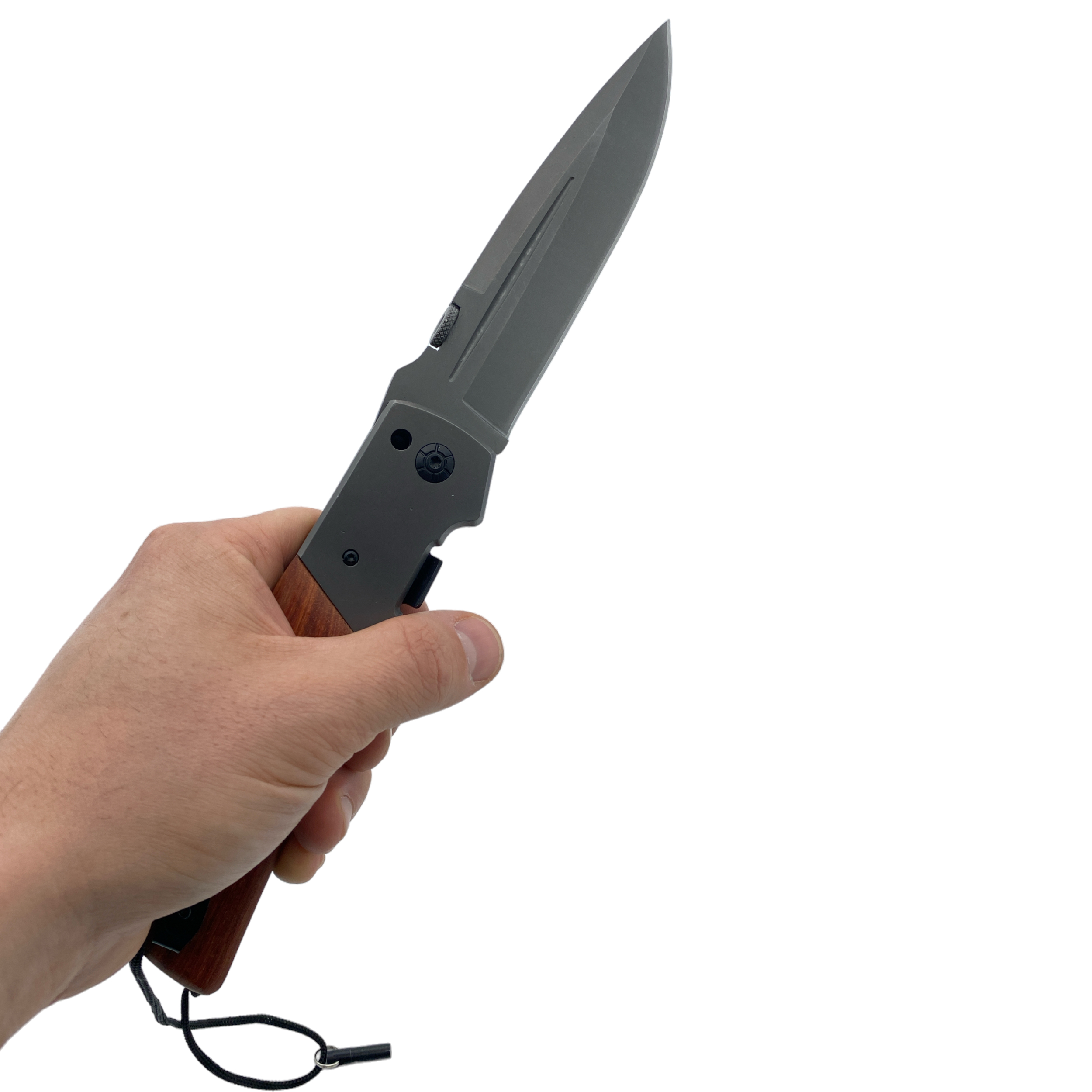 - Sznurek dla Dodatkowej Kontroli: Dzięki sznurkowi z metalowym kołkiem, masz dodatkową kontrolę nad swoim nożem, co jest przydatne podczas pracy w trudnych warunkach.