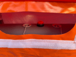 Namiot zapewnia komfort pracy w każdych warunkach: wysokość 3,2 m w szczycie umożliwia swobodne poruszanie się, a 2,6 m przy ścianach pozwala na ustawienie wyposażenia. Pomarańczowy kolor zwiększa widoczność, co jest kluczowe podczas działań nocnych, w zadymieniu lub w terenie zurbanizowanym.