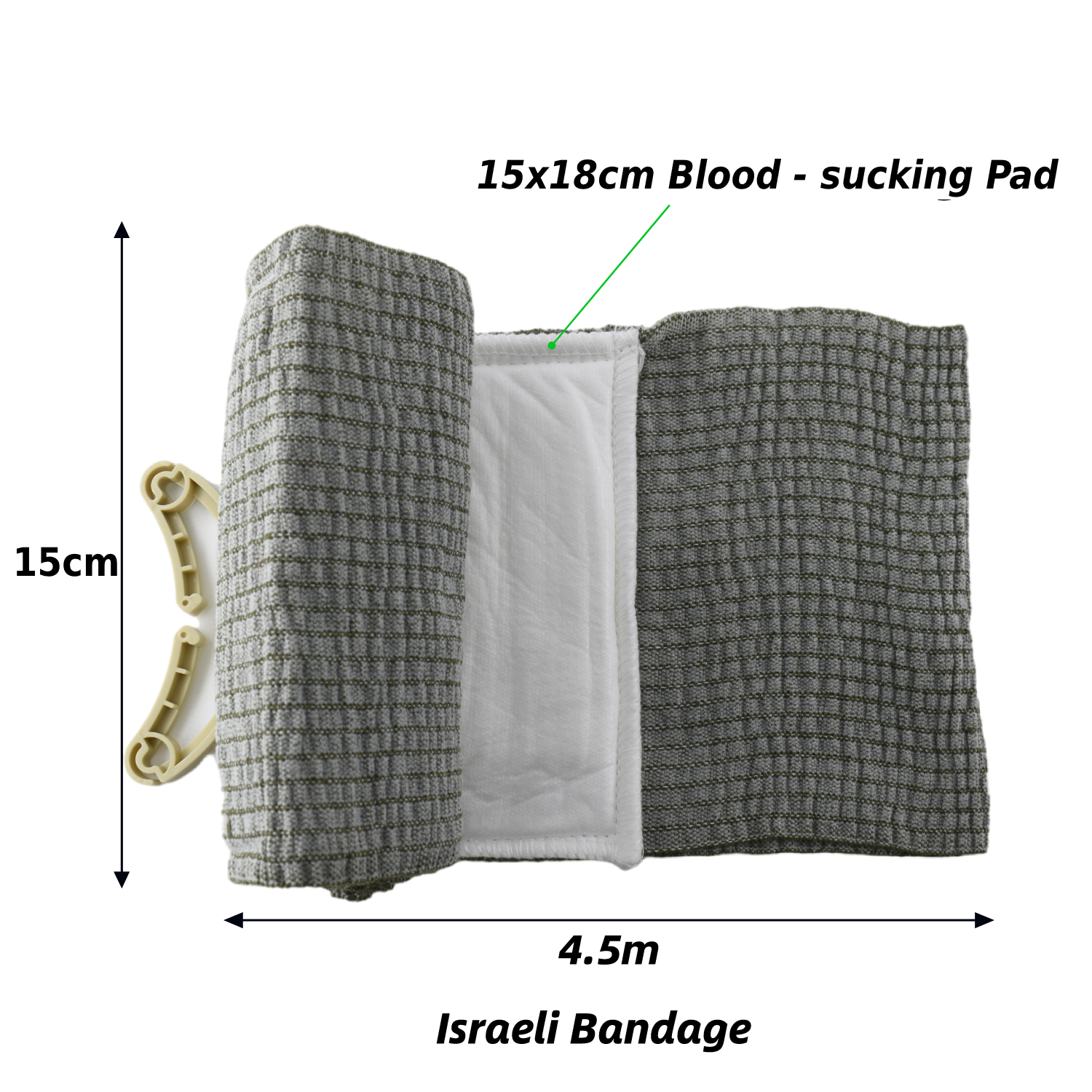 Opatrunek osobisty typu izraelskiego, zwany także opatrunkiem izraelskim, to zaawansowany materiał opatrunkowy, który umożliwia szybkie i skuteczne zaopatrzenie ran. Opatrunek osobisty typu izraelskiego o wymiarach 15 cm (6 cali) to opatrunek stosowany do opatrywania ran w różnych miejscach ciała, w tym na kończynach, klatce piersiowej i brzuchu.