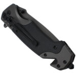 • Zbijak do Szyb: W tylnej części noża znajduje się zbijak do szyb, co czyni go przydatnym narzędziem do sytuacji awaryjnych, takich jak ewakuacja z pojazdu.