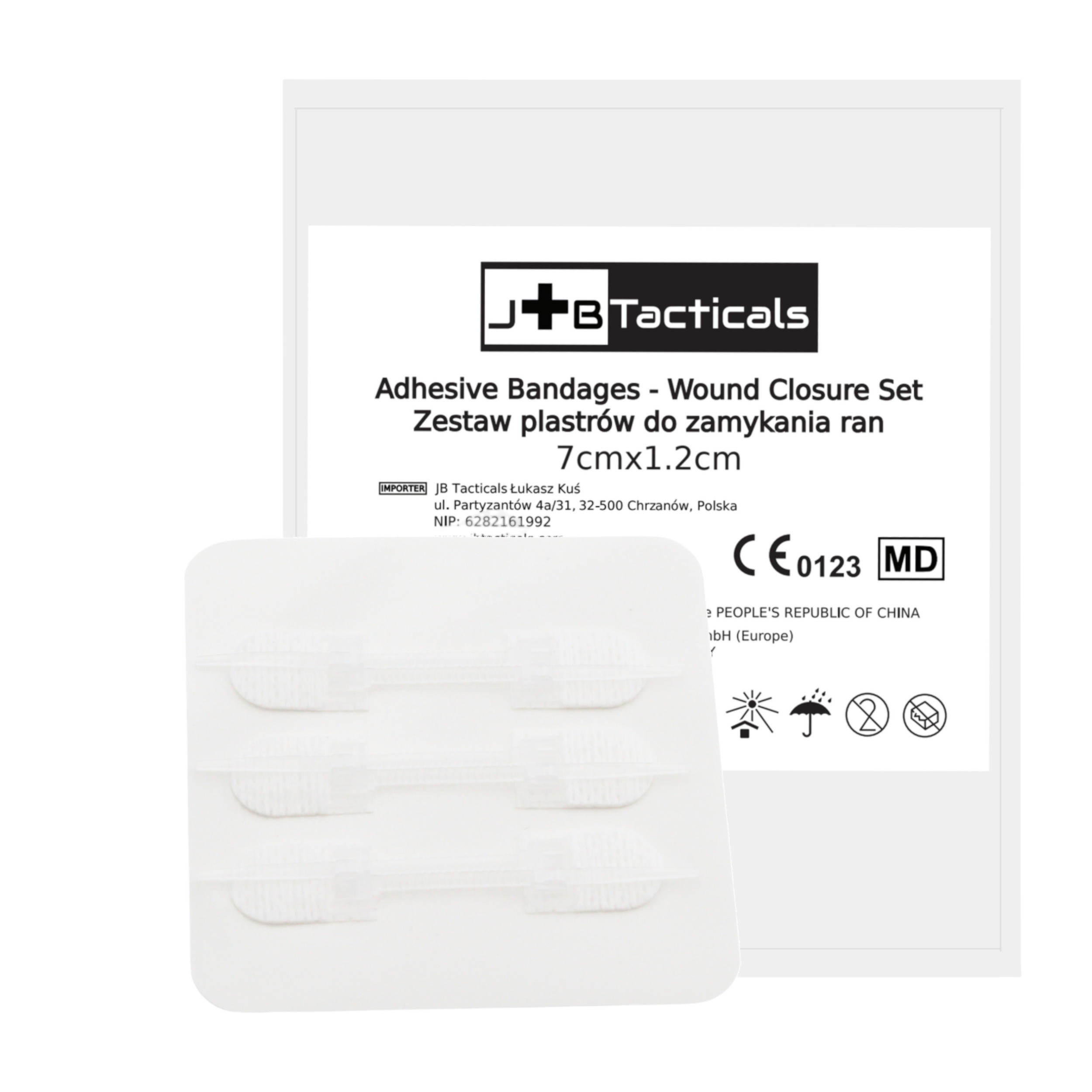 Zestaw plastrów do zamykania ran JB Tacticals 7×1,2 cm – 3 sztuki, sterylne